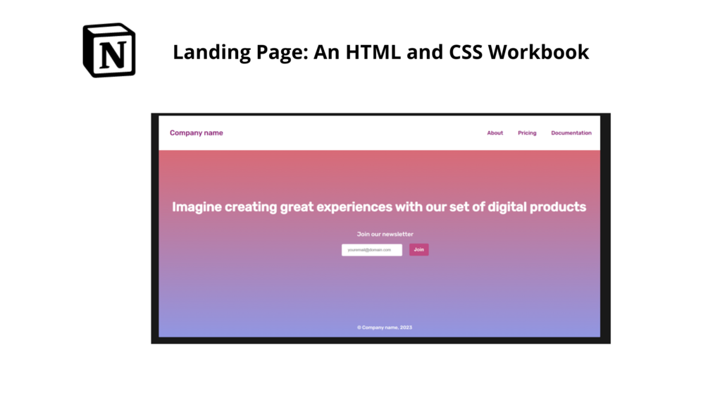 The Landing Page Workbook: HTML and CSS is a notion template that will help you practice web development skills by building a simple landing page. It includes: